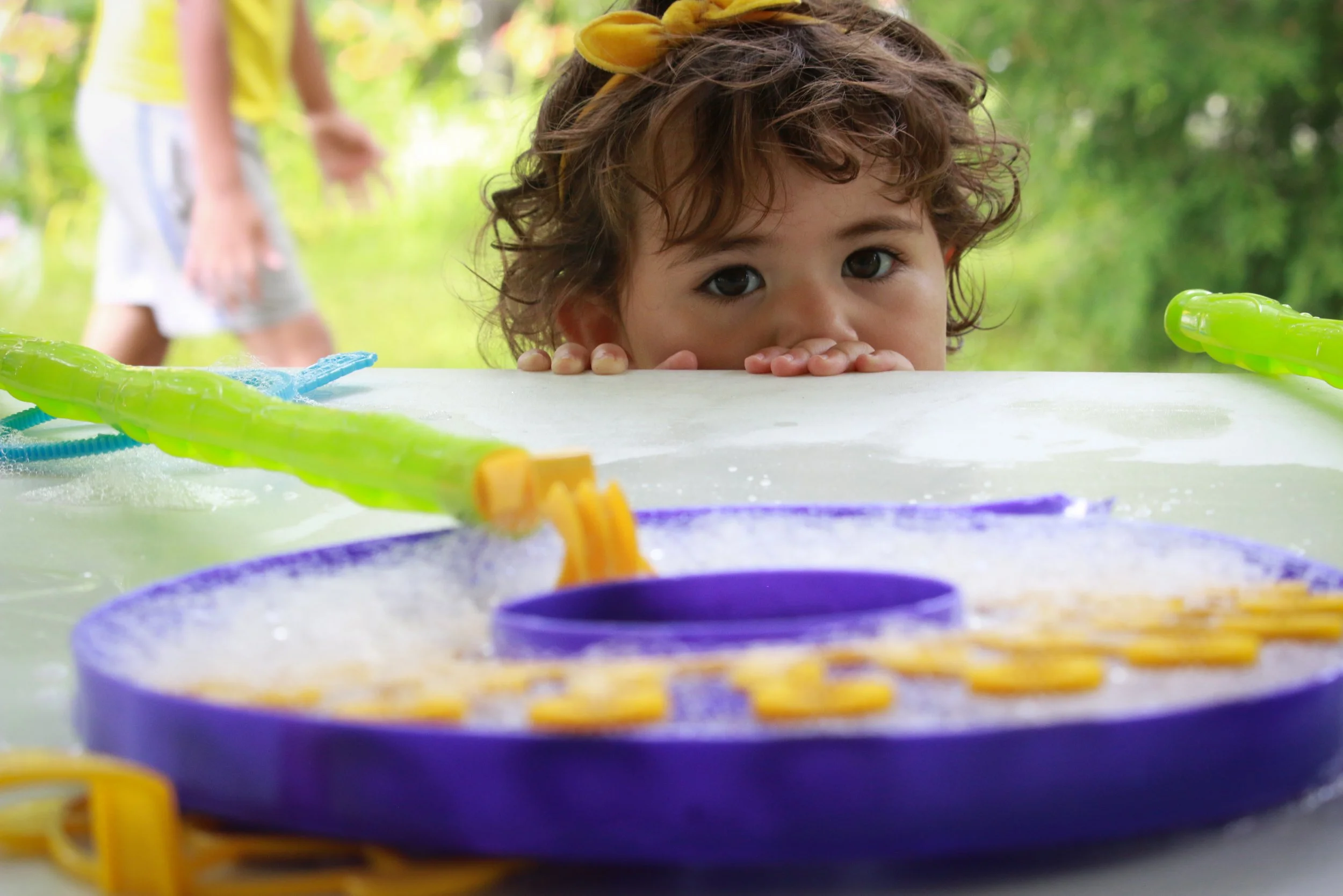 The Splash Pad is more than water play. Look for bubble-making and sidewalk chalk art, too!