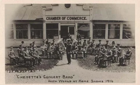 The Lyceum Magazine 1923 shows an example of a multi-instrumentalist who also played the musical saw. Among the many solo artists, there were many popular bands as well. Dale has a long history in music, including his great uncle, who was bandleader Ed Chenette (formerly “Chesnut”), for Chenette's Concert Band. They toured the Lincoln Chautauqua circuit as well as some Chautauqua concerts in Canada. Among other band members were three other great uncles of Dale's, including Clate, Eugene, and Clare Faw, also known as “Tex.” Ed was the oldest and started the band after returning from Europe in WWI.